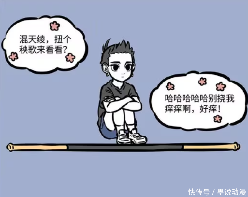 孙悟空还开发出混天绫新玩法,那就是让它扭秧歌。能够想到这种玩法的人,只能说孙悟空是个人才。另外混天绫还会挠孙悟空,让他狂笑不止。哪吒还是面无表情,就蹲坐在金箍棒上面。