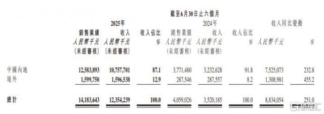 地域方面,中国内地收入占比 87.1%,境外市场虽仅占 12.9%,但增速高达 455.2%,显示其"品牌国际化、市场全球化"战略正在落地。