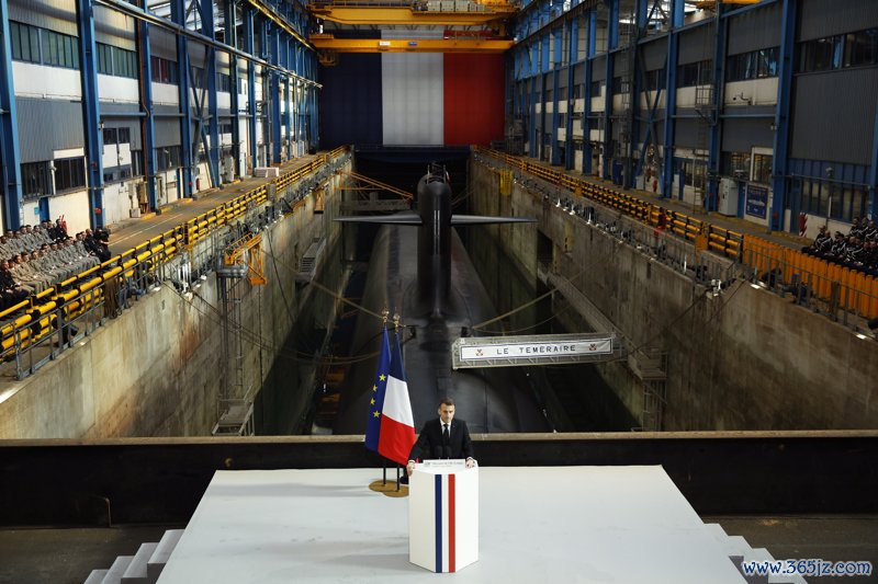 3月2日,法国总统马克龙在西部克罗宗的长岛核潜艇基地发表讲话。