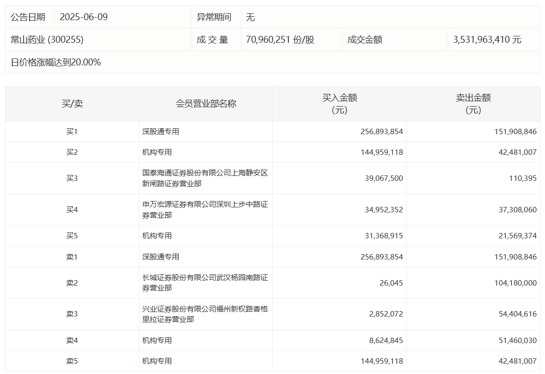 常山药业今日涨停 深股通专用席位买入2.57亿元并卖出1.52亿元常山药业今日涨停 深股通专用席位买入2.57亿元并卖出1.52亿元