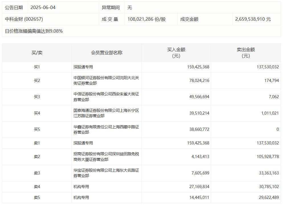 中科金财今日涨停 深股通专用席位买入1.59亿元并卖出1.38亿元中科金财今日涨停 深股通专用席位买入1.59亿元并卖出1.38亿元